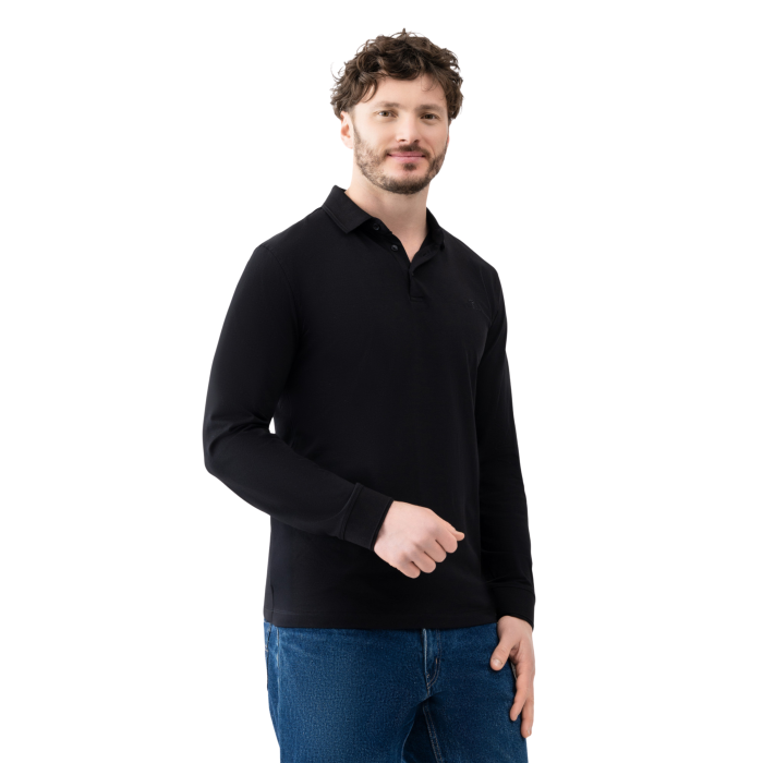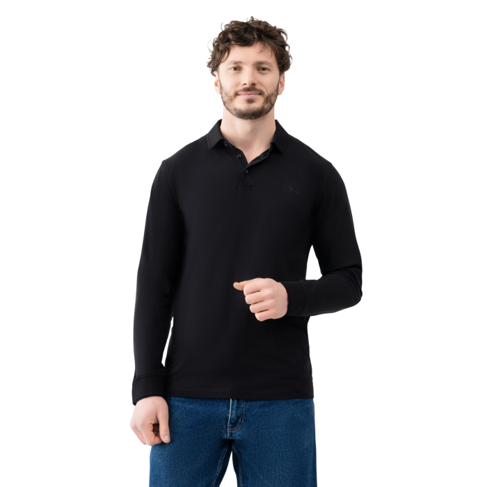 Лонгслів-поло Avecs чорний з трикотажу Double Face — ідеальний баланс класики та комфорту