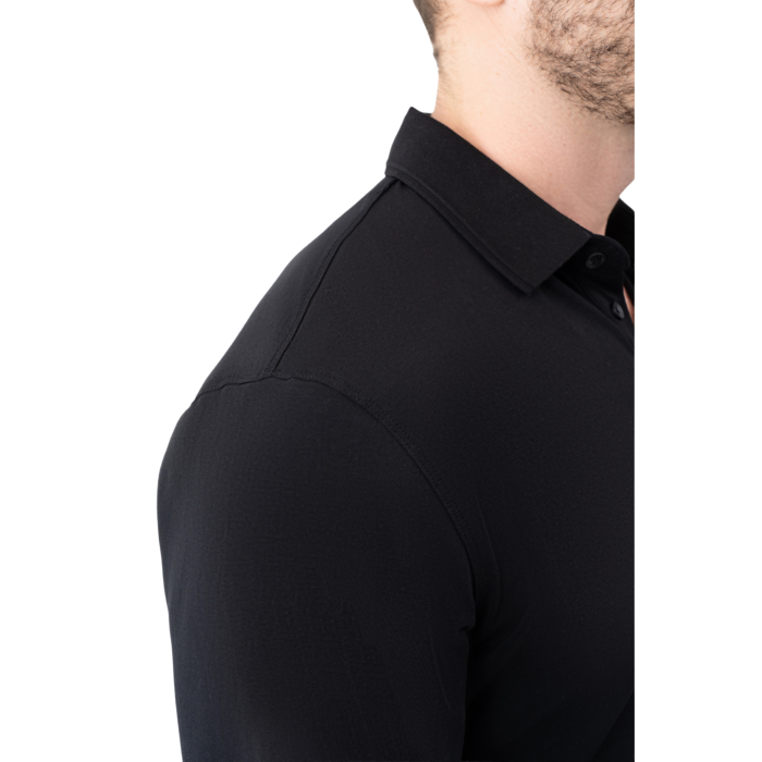 Купити лонгслів-поло Avecs чорний з доставкою — це інвестиція у ваш комфорт та впевненість. Обирайте надійність від SportTops!