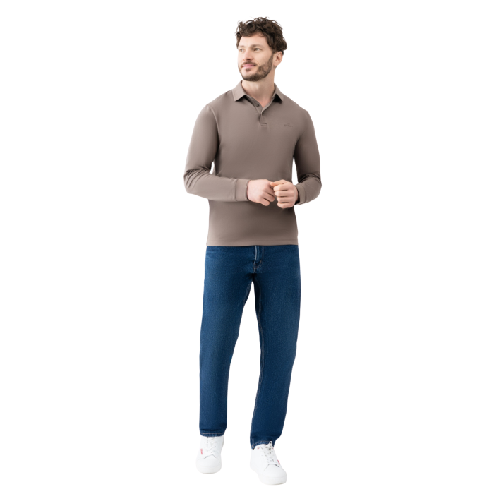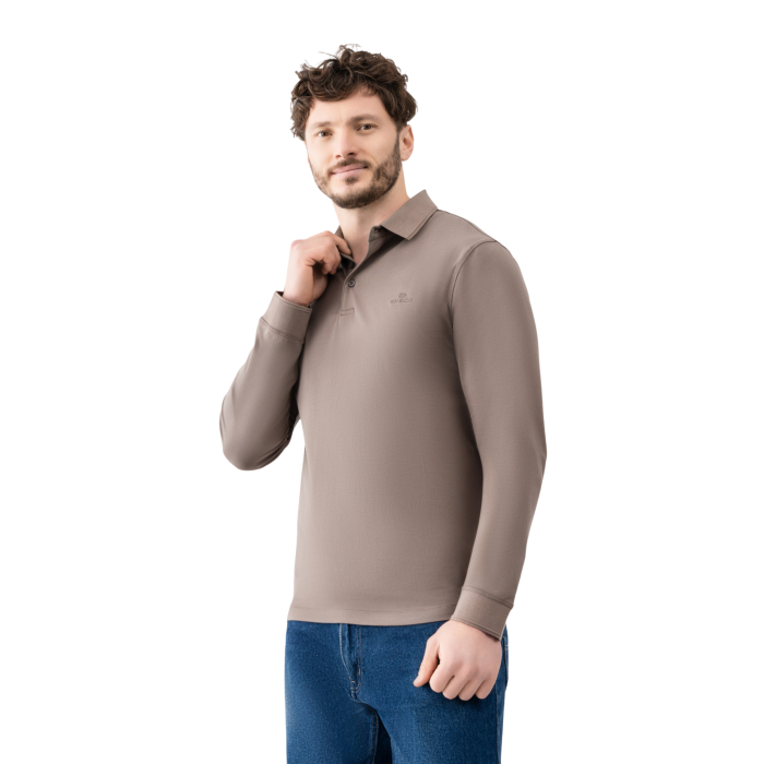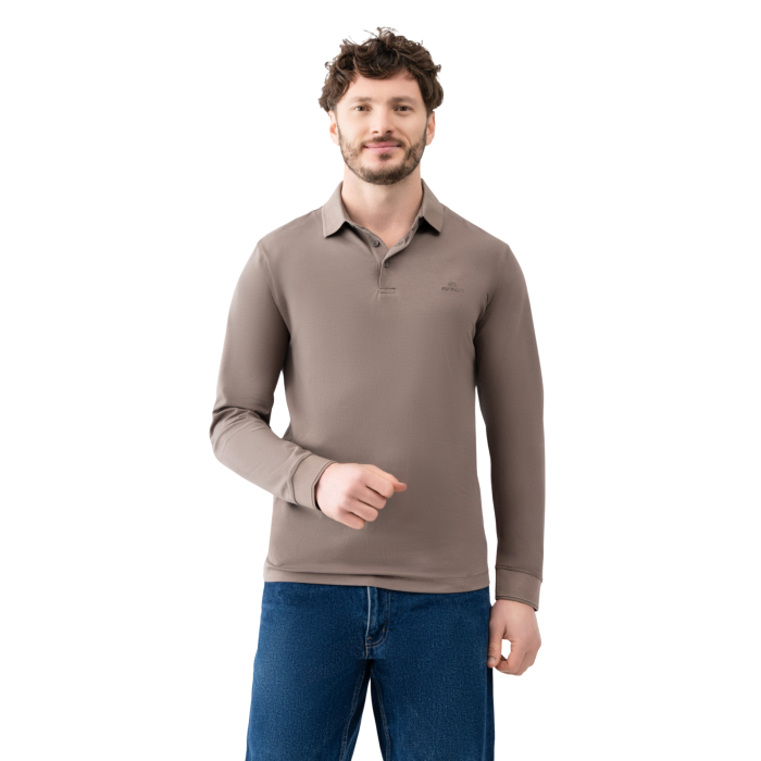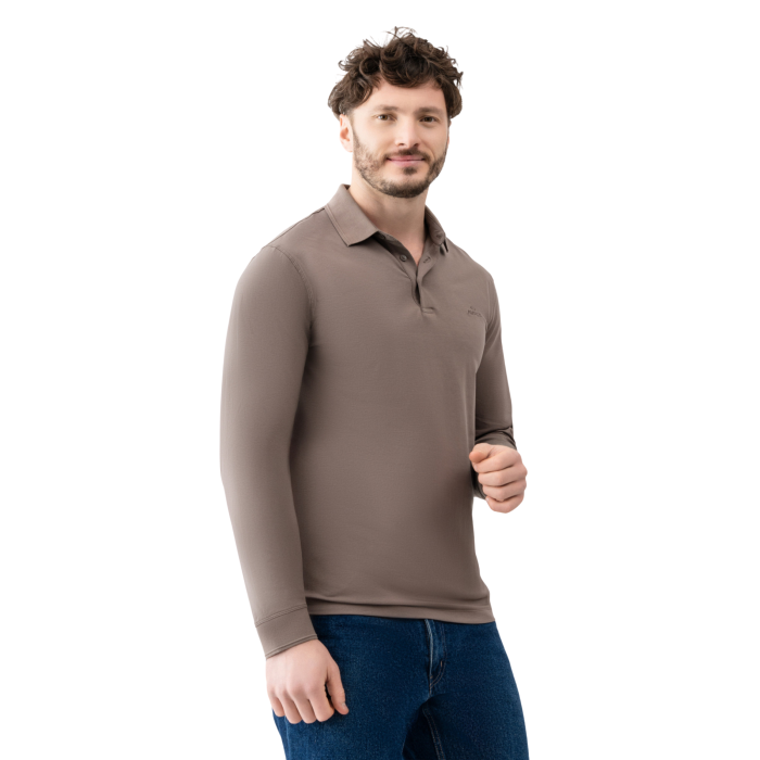 Лонгслів-поло Avecs коричневий з трикотажу Double Face 30592/59 — вибір впевнених чоловіків