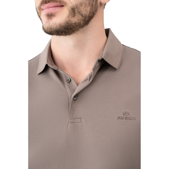Лонгслів-поло Avecs коричневий з трикотажу Double Face 30592/59 — це еталон стриманого стилю та безкомпромісного комфорту, створений для активного міського життя.
