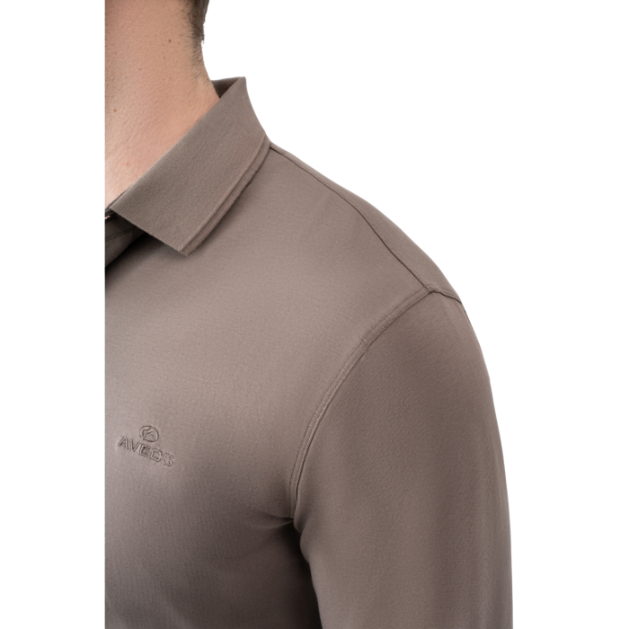 Купити лонгслів-поло Avecs коричневий з доставкою — це ваш крок до створення бездоганного та функціонального гардероба.
