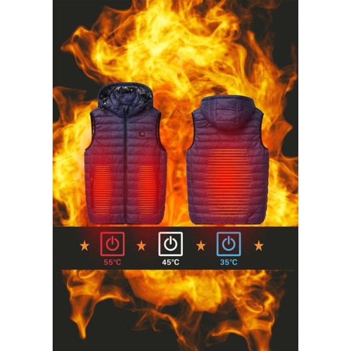 - Особливості: Знімний капюшон, внутрішня кишеня для Powerbank, безпечні та ізольовані нагрівачі.
