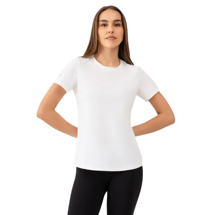 Ця жіноча спортивна футболка Avecs виготовлена з високоякісного еластичного матеріалу (87% поліестер, 13% спандекс), що гарантує ідеальну посадку та свободу рухів. Завдяки унікальним технологіям, інтегрованим у тканину, футболка забезпечує оптимальні умови для вашого тіла навіть під час найспекотніших днів. Це справжня біла футболка для фітнесу, яка турбується про ваш комфорт.