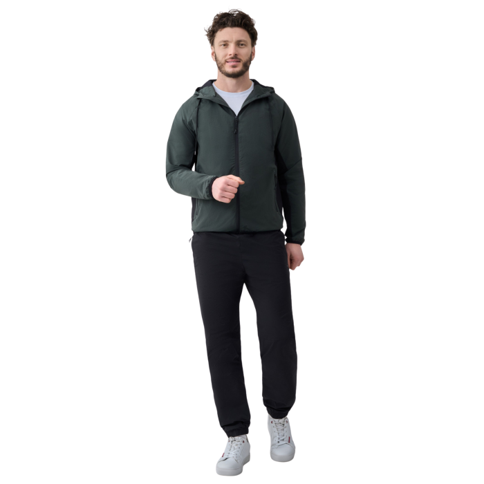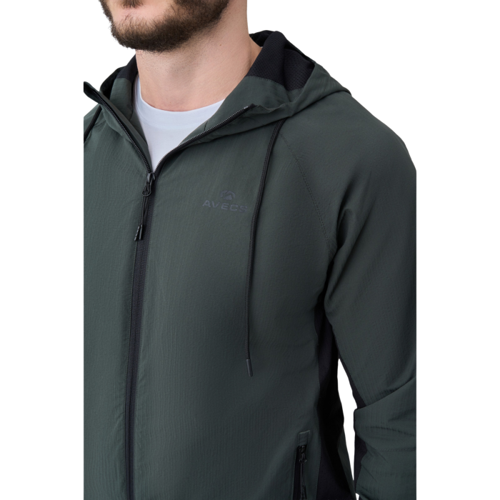 Чи забезпечує цей костюм комфорт у вітряну або мінливу погоду? Так, завдяки цілісному капюшону з надійною системою регулювання та структурованій тканині з поліестеру, виріб надійно захищає від прохолоди, зберігаючи при цьому оптимальний мікроклімат тіла. Ви можете замовити зелений спортивний костюм Avecs і особисто переконатися в ефективності лазерної перфорації під час тривалого носіння.