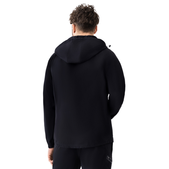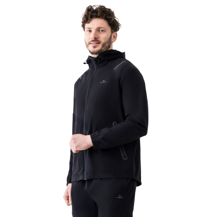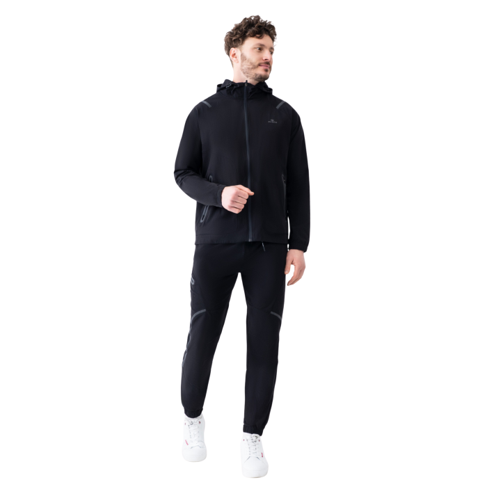 Кожна деталь, яку має спортивний костюм чоловічий Avecs 50398/1 чорний, продумана до дрібниць для вашої зручності. Кофта оснащена глибоким незнімним капюшоном, який надійно захищає від вітру та раптового дощу. Особливу увагу приділено безпеці: виріб доповнений світловідбивними елементами, які роблять вас помітними для водіїв у темний час доби. Це робить цей чорний спортивний костюм для тренувань ідеальним варіантом для вечірніх пробіжок містом.