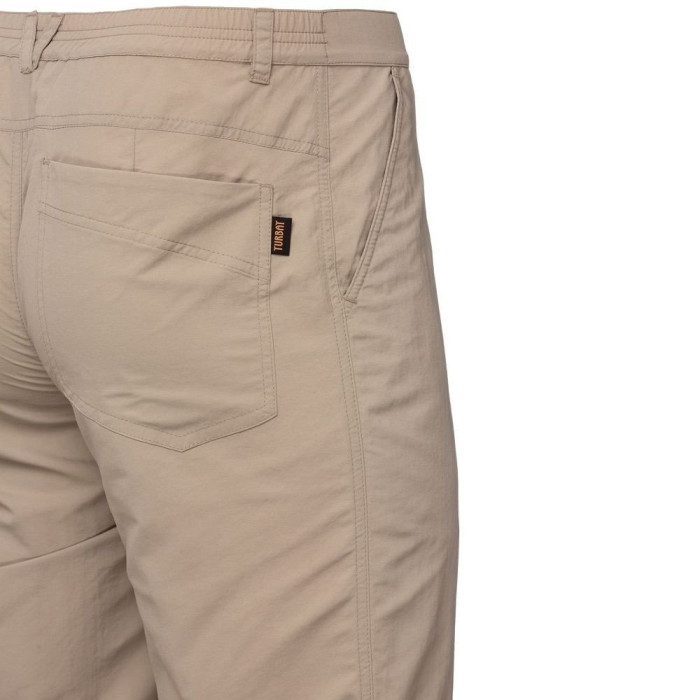 Основна перевага чоловічих штанів Turbat Nomad полягає у їхньому матеріалі. Виготовлені зі 100% нейлону щільністю 120 г/м², ці штани надзвичайно легкі, їхня вага становить усього 207 грамів (для розміру L). Це означає, що ви практично не відчуватимете їх на собі, що є критично важливим фактором під час тривалих поїздок або спекотного літа. Проте справжньою зіркою є їхня здатність до швидкого висихання. Якщо ви раптом потрапили під несподіваний літній дощ або під тропічну зливу під час подорожі до країни з вологим кліматом, швидкосохнучі штани для відпустки Turbat Nomad Mns висохнуть у лічені хвилини. Це дозволить вам швидко повернутися до своїх справ, не переймаючись вологим одягом. Тканина є тонкою, але водночас надзвичайно зносостійкою, гарантуючи тривалий термін служби навіть при інтенсивному використанні.