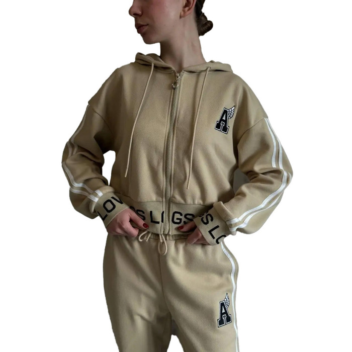 Цей літній спортивний костюм жіночий є чудовим варіантом для різноманітних видів активності: від ранкової пробіжки та тренувань на свіжому повітрі до йоги, піших прогулянок чи відпочинку на природі. Він також ідеально підходить для повсякденного носіння, подорожей та зустрічей з друзями, забезпечуючи стильний та розслаблений вигляд. Бежевий колір додає костюму елегантності та легкості, що дозволяє легко поєднувати його з іншими елементами гардеробу. Завдяки своєму універсальному дизайну, цей стильний трикотажний костюм з капюшоном стане вашим улюбленим вибором для будь-якої пори року.
