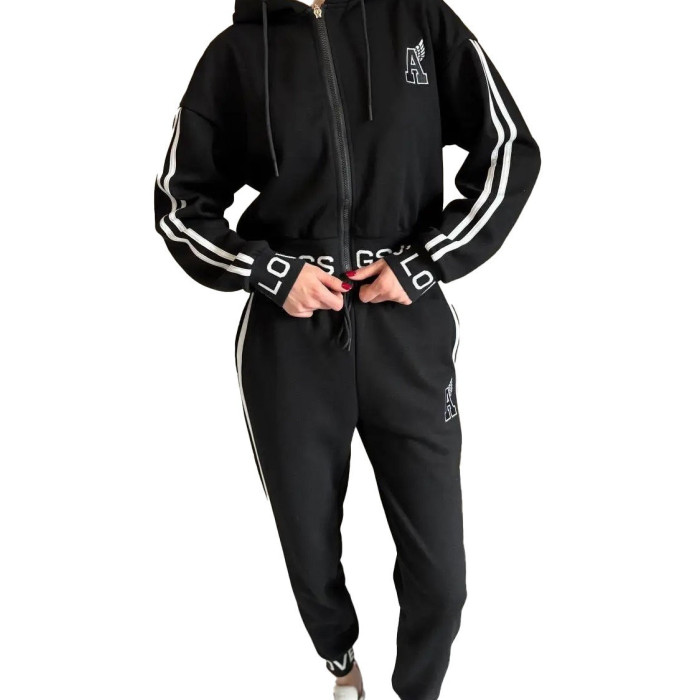 Цей легкий спортивний костюм на блискавці є ідеальним вибором для широкого спектра активностей: від ранкових пробіжок та тренувань на свіжому повітрі до йоги, піших прогулянок чи відпочинку на природі. Він також чудово підходить для повсякденного носіння, подорожей та зустрічей з друзями, забезпечуючи стильний та розслаблений вигляд. Класичний чорний колір робить його універсальним і легко комбінованим з іншими елементами гардеробу. Завдяки своєму лаконічному і в той же час стильному дизайну, цей повсякденний костюм для відпочинку стане вашим фаворитом для будь-якого випадку, де важливий комфорт та бездоганний вигляд.