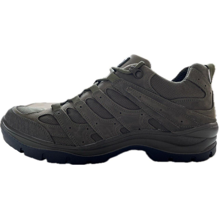 Міцний та Дихаючий Верх: Верх кросівок комбінований, поєднуючи натуральну шкіру з водовідштовхуючим покриттям та міцну дихаючу сітку. Це забезпечує відмінну вентиляцію в спекотну пору року, запобігаючи перегріву стопи, та водночас надійно захищає від вологи та пошкоджень. Це ідеальні дихаючі тактичні кросівки літо.
