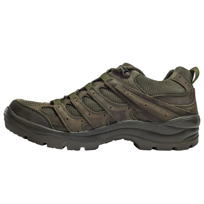 Гнучка Двокомпонентна Підошва: Підошва виготовлена з комбінації гуми та поліуретану, що забезпечує ідеальне поєднання гнучкості, зчеплення та амортизації. Вона стійка до стирання та забезпечує надійне зчеплення з різними типами поверхонь, будь то ґрунт, асфальт чи кам'яниста місцевість. Це тактичне взуття для екстремальних умов.