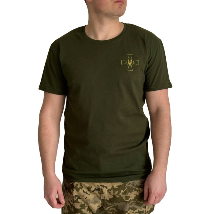 Особливості: Круглий комір, принт (хрест ЗСУ), посилені плечові шви