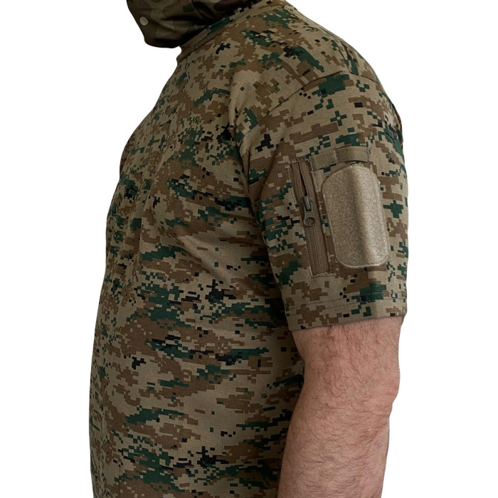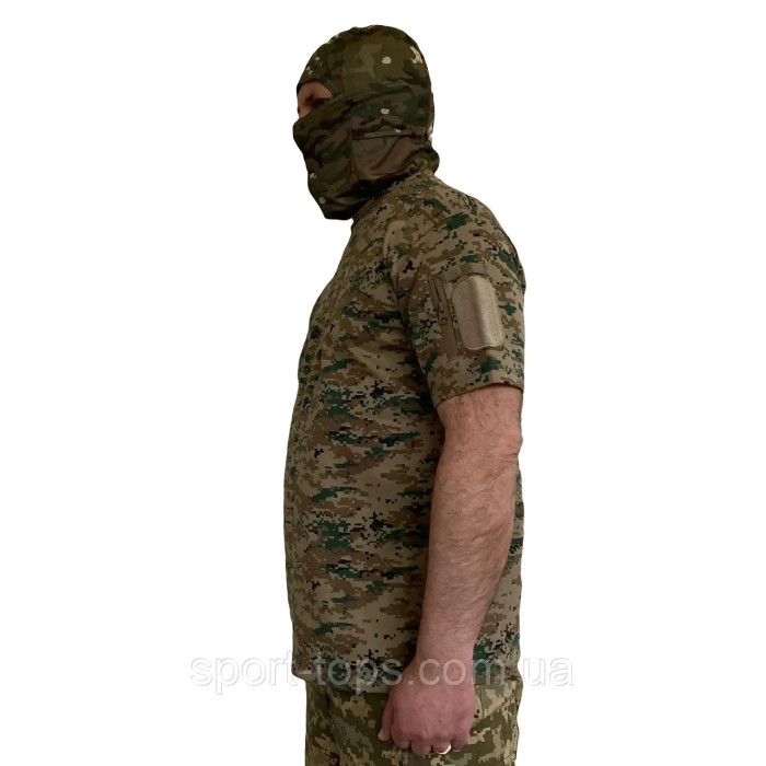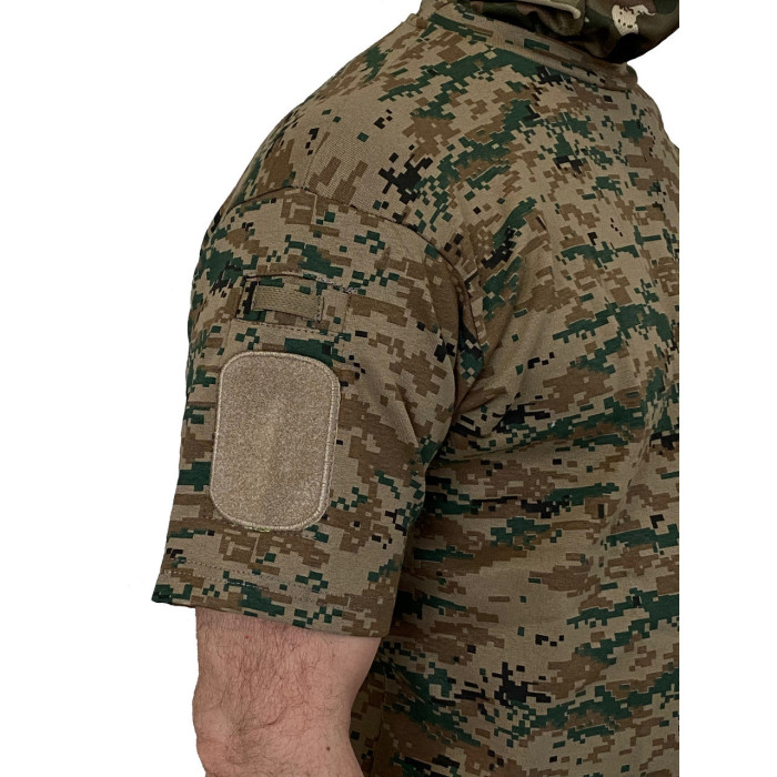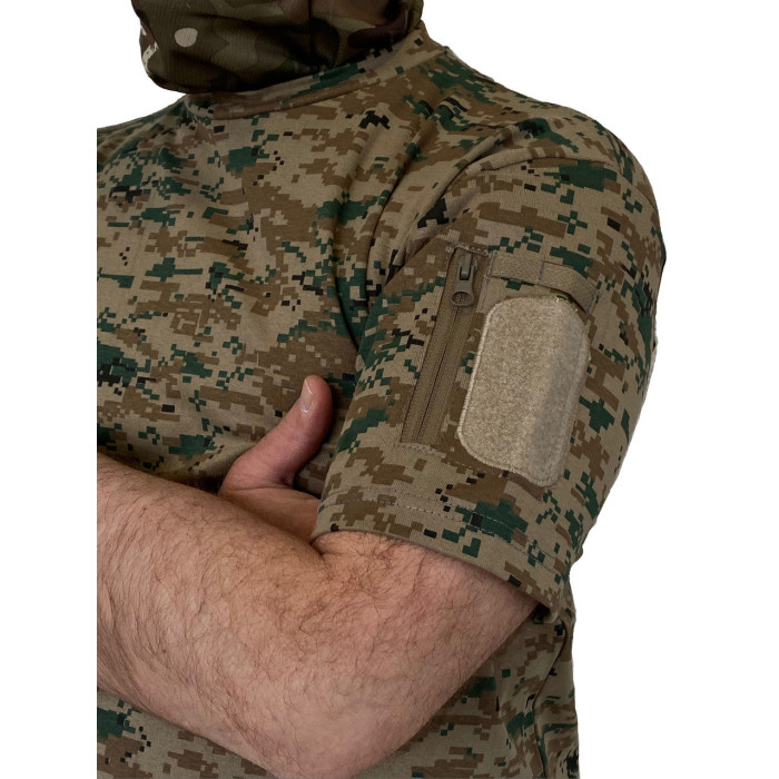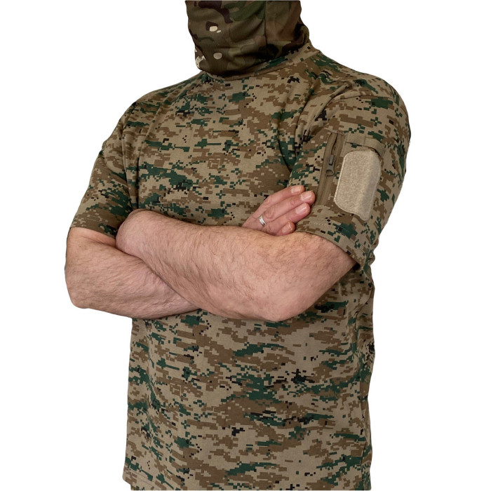 Функціональні кишені для шевронів: На обох рукавах розташовані функціональні кишені з додатковою липучкою для кріплення шевронів та патчів. Це робить футболку з кишенями для шевронів незамінною для військових та тих, кому важливо мати місце для ідентифікаційних знаків.