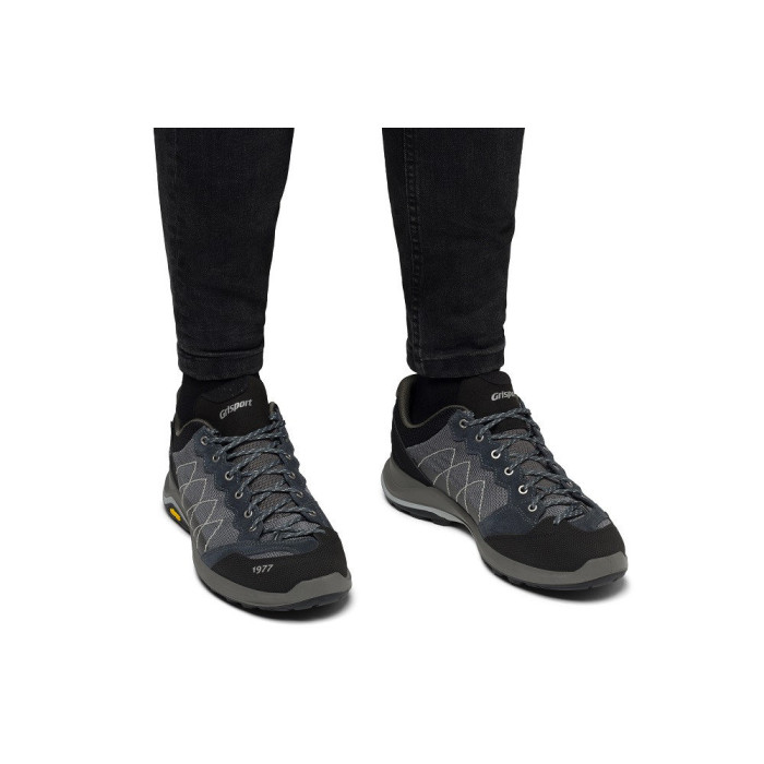 Ключовою перевагою Grisport 14301V3 є високоякісна підошва Vibram®. Ця підошва дає відмінне зчеплення як на сухій, так і на мокрій поверхні, забезпечуючи максимальну стабільність та безпеку під час ваших пригод. Нековзні властивості підошви зберігаються у різних температурних режимах, що робить її універсальною для різноманітних погодних умов. Крім того, підошва Vibram® відома своєю підвищеною зносостійкістю, що гарантує тривалий термін служби взуття. Завдяки цій підошві, ваші чоловічі кросівки для туризму стануть надійним супутником на будь-якій місцевості, від гірських стежок до міських парків.