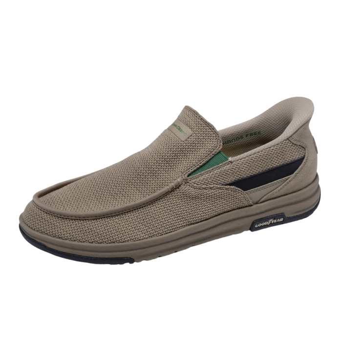 Модель Skechers 256030 TPE вигідно вирізняється на фоні аналогів завдяки використанні висококласних матеріалів підошви. Співпраця з легендарним брендом Goodyear дозволила створити протектор, що забезпечує неймовірне зчеплення з будь-якою поверхнею. Ці мокасини з підошвою Goodyear гарантують стабільність навіть на вологому покритті завдяки системі Anti-Slip Under Wet and Dry Conditions.