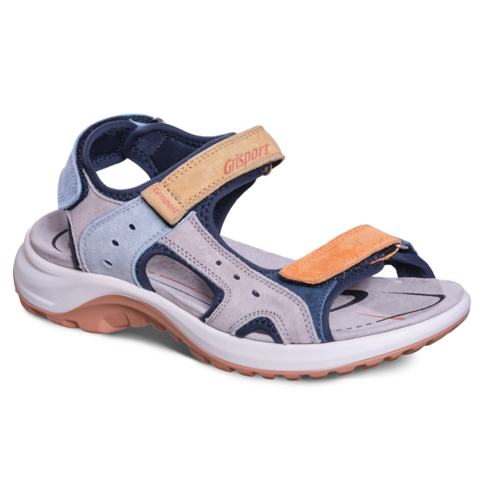 Жіночі сандалі Grisport у стильному сіро-блакитному виконанні поєднують у собі витривалість взуття для активного відпочинку та витончену естетику сучасного міського стилю.