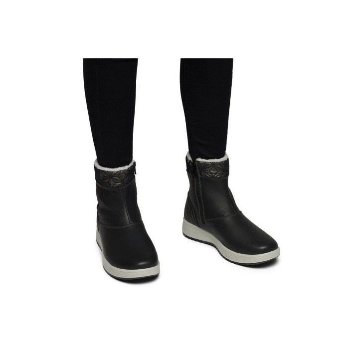 Ця модель виконана в класичному чорному кольорі з комбінованим забарвленням, що робить її надзвичайно універсальною та легкою для інтеграції в будь-який зимовий гардероб. Елегантний дизайн чудово доповнить як повсякденний, так і більш витончений образ. Ці черевики ідеально підходять для міських прогулянок, подорожей та повсякденного використання, надаючи вашому образу завершеності та функціональності.